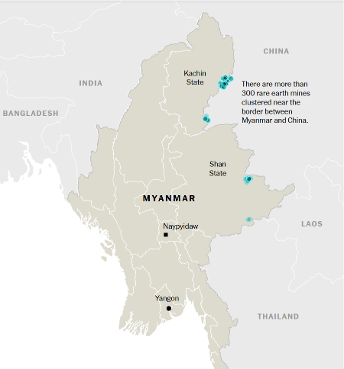 This REE production is inherently tied to the PRC. Burma’s REE mines are concentrated in the country’s northern Kachin and Shan regions along its border with the PRC. The labor at these unlicensed mines is estimated to be comprised of 30% PRC workers. These PRC citizens conduct the skilled labor of the mines, and the vast majority of the product being exported to PRC state-owned enterprises (SOEs) such as the China Rare Earth Group. As such, Burma was estimated to account for 57% of the PRC’s REE imports in 2024.